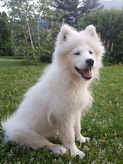 2 semaines déjà passé avec ma petite Samoyede Poca. Elle est arrivée chez moi très propre joueuse et dynamique. Elle est même mieux que ce que j’esperais... Éleveuse sérieuse, aimante, on peut l’appeler si besoin, toujours de bon conseil, elle nous permet de voir via sa page Facebook les chiots lors des deux premiers mois quotidiennement, élevage très loin géographiquement (a côté de Perpignan) mais le déplacement en vaut vraiment la peine, je suis très reconnaissant pour avoir eu enfin le chien de mes rêves!